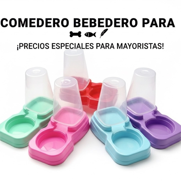 El bebedero comedero para mascotas GIO por mayor es un producto 2 en 1 ideal para venta rápida en pet shops, veterinarias y tiendas de suministros. Integra comedero doble y bebedero con dispensador por gravedad, ayudando a mantener agua disponible mientras se ofrece alimento en un solo lugar. Sus colores surtidos lo hacen perfecto para vitrina y compra por impulso dentro de la línea de accesorios para mascotas por mayor.